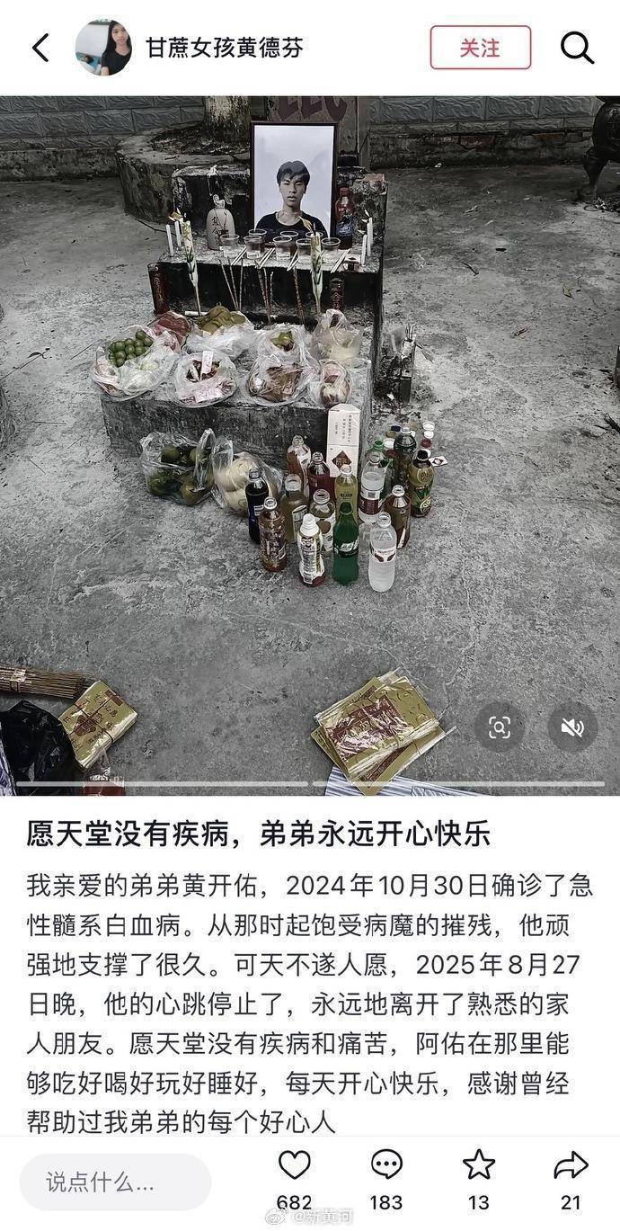 “愿天堂没有疾病和痛苦,阿佑在那里能够吃好喝好玩好睡好,每天开心快乐,感谢曾经帮助过我弟弟的每个好心人。”黄德芬在社交媒体上写道。“得到这么多人关心,是弟弟的福气。”