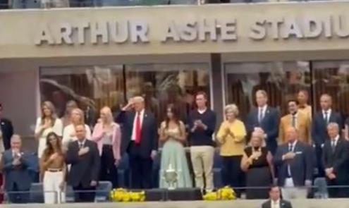 当地时间9月7日,美国总统特朗普前往现场观看美国网球公开赛男子单打决赛。当现场响起国歌时,特朗普从套房中现身,起立敬礼,并出现在大屏幕上,而现场观众则报以一片嘘声。