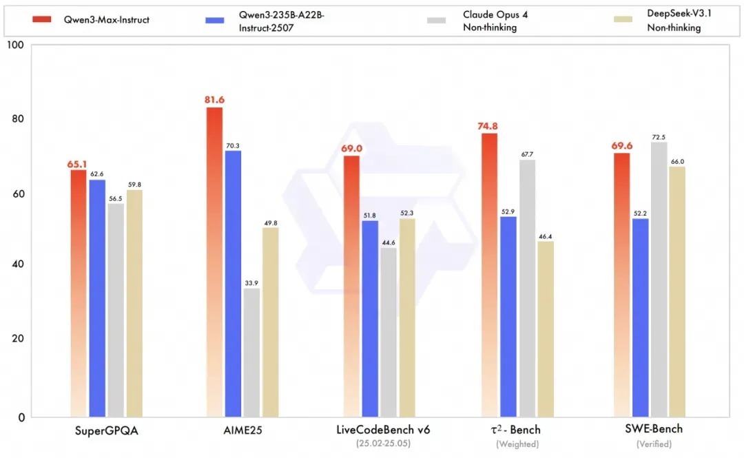 目前,Qwen3-Max-Instruct的预览版在LMArena文本排行榜上位列第三,超越了GPT-5-Chat。正式版本在代码能力和智能体(agent)能力方面进一步提升,在涵盖知识、推理、编程、指令遵循、人类偏好对齐、智能体任务和多语言理解的全面基准测试中均达到业界领先水平。