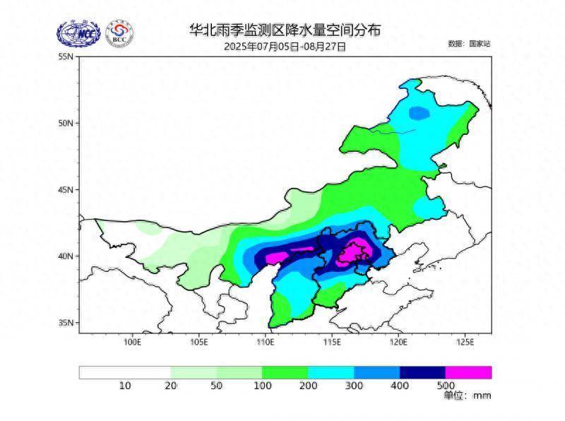 根据中央气象台统计,今年华北雨季监测区已经历了5次强降水过程。7月23日至29日,陕西北部、山西北部、河北中北部、北京、天津北部、内蒙古中东部及东北部分地区出现累计降水量达100毫米至200毫米的强降水,北京北部和西部山区、河北北部山区等地部分地区超过250毫米,北京密云区郎房峪达573.5毫米,河北保定易县达605.8毫米。